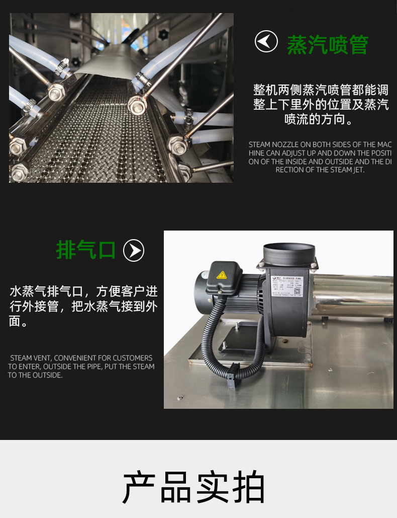 收縮速度快:蒸汽的高熱量能夠快速傳遞給包裝膜,使包裝膜迅速收縮,提高包裝效率,可適用于高速生產(chǎn)線,滿足大規(guī)模生產(chǎn)的需求.