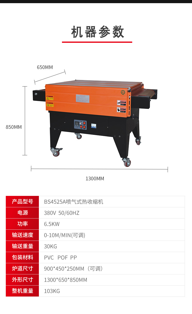 - 收縮均勻度高:噴氣式熱收縮機通過噴氣系統(tǒng)將熱空氣均勻地噴射到包裝薄膜上。熱空氣能夠全方位地包裹產品,使得薄膜在各個方向受熱均勻。例如,在包裝正方體形狀的產品時,熱空氣會從產品的六個面同時作用,讓薄膜在各個面都能以相近的速度收縮,避免出現局部收縮過度或收縮不足的情況,從而使包裝后的產品外觀更加平整、美觀。