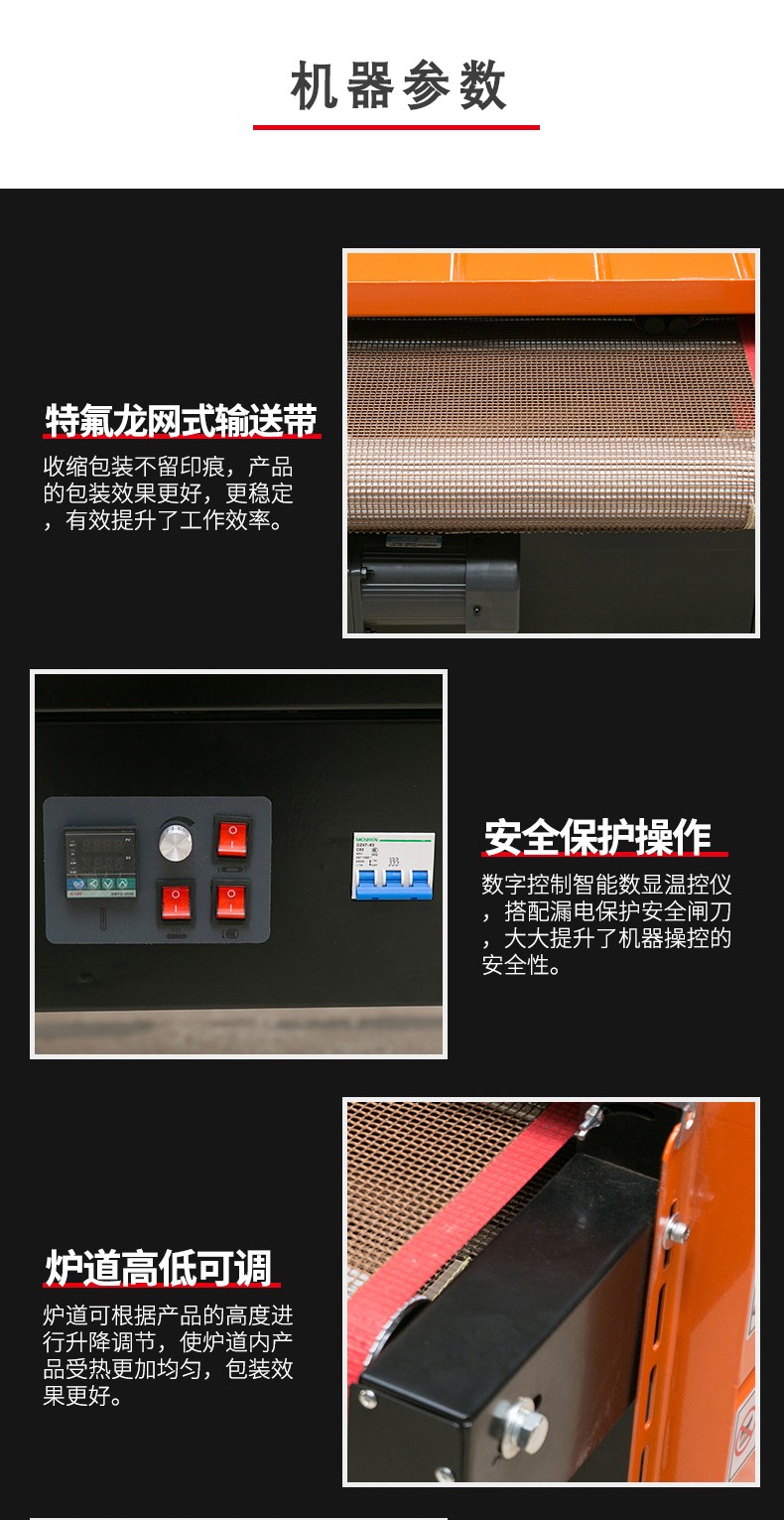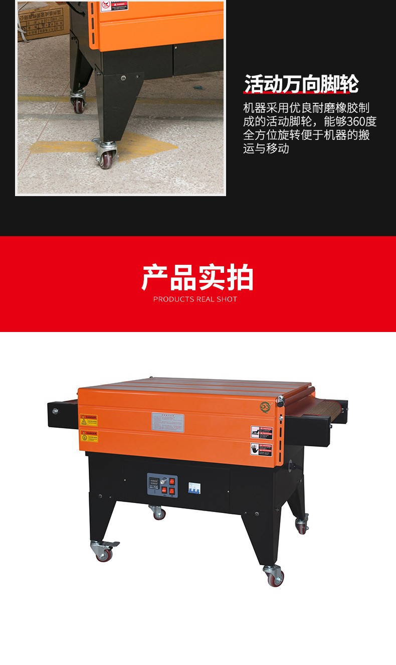 - 輸送速度可調:輸送速度可以根據包裝需求靈活調整。可以根據產品的大小、形狀復雜程度以及生產效率的要求來設置合適的輸送速度。比如,在包裝簡單的小型產品時,可以提高輸送速度,以提高包裝效率;而在包裝大型或形狀不規(guī)則的產品時,適當降低輸送速度,確保熱空氣有足夠的時間使薄膜充分收縮,從而保證包裝質量。