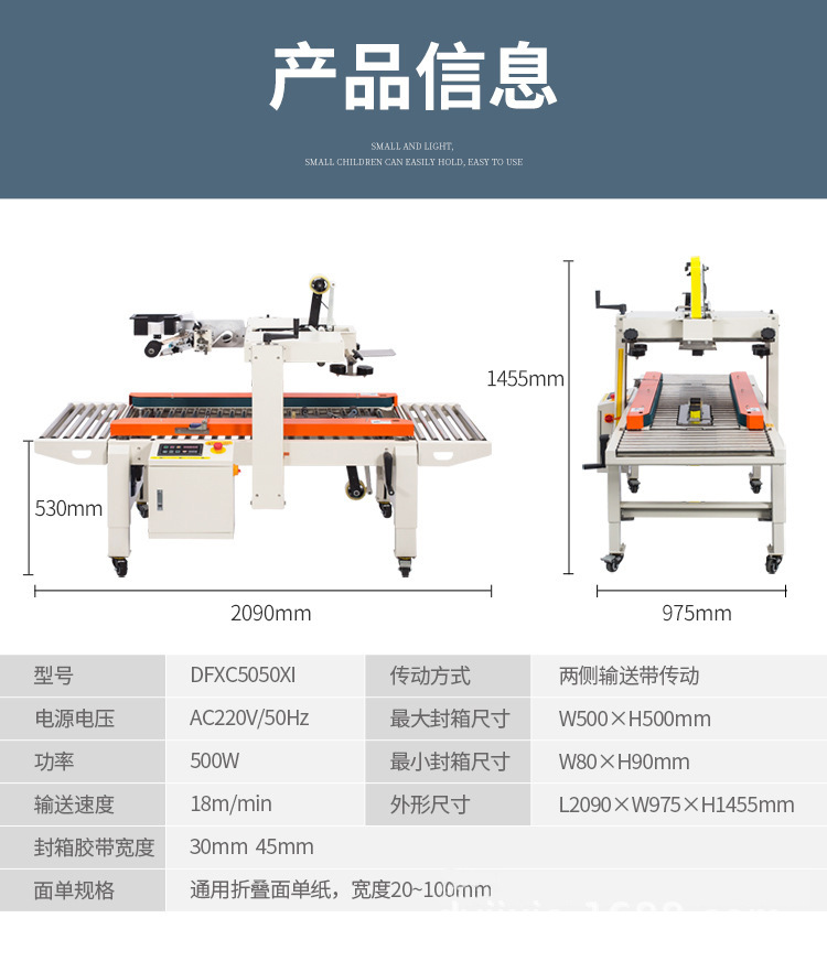 - 優質封箱效果:對于封箱而言,能夠確保膠帶粘貼得平整、緊密。它通過控制膠帶的張力和粘貼的壓力,使膠帶均勻地貼合在紙箱封口處,避免出現膠帶褶皺、粘貼不牢等情況。像在運輸過程中,如果封箱不牢固,紙箱可能會散開,導致產品受損,而一體機良好的封箱效果可以有效防止這種情況發生。