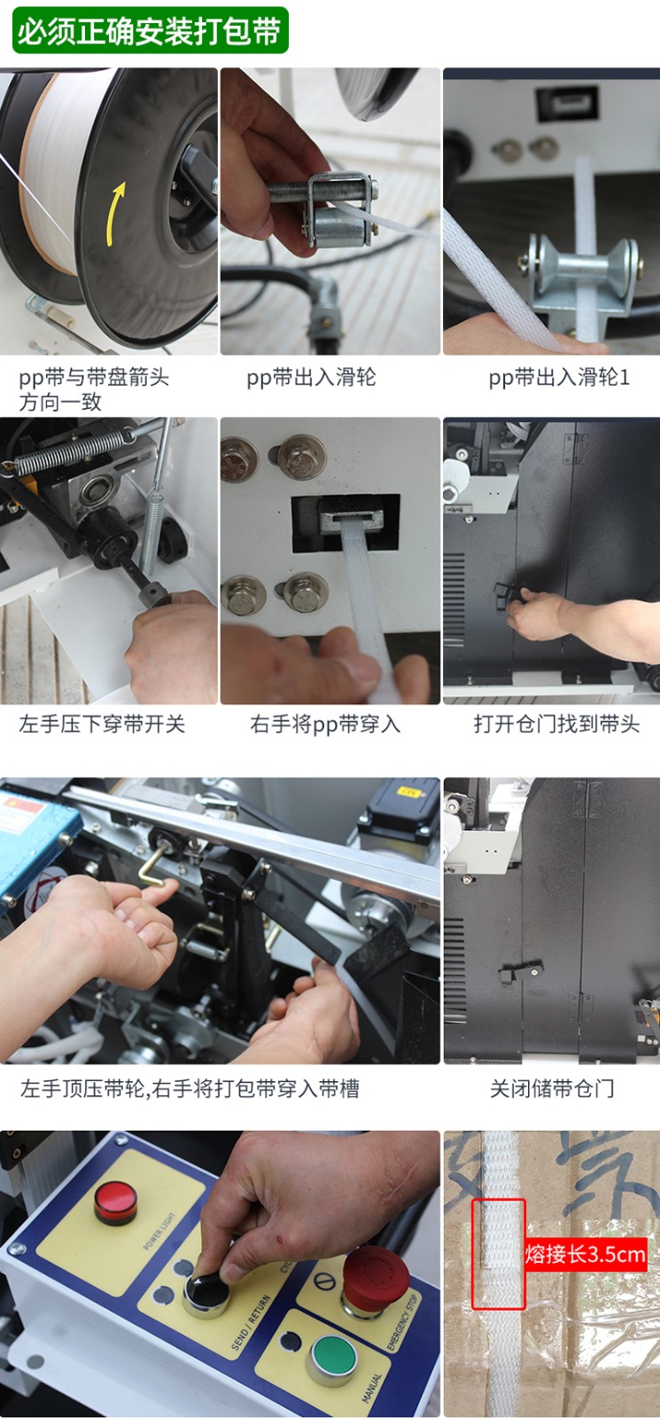 - 寬度:常見的打包帶寬度有 9mm、12mm、16mm、19mm 等4。如果使用的是 9-12mm 的打包帶,可選擇對應寬度規格的打包機;若使用 16mm 及以上寬度的打包帶,則需選擇能兼容大寬度打包帶的機型。