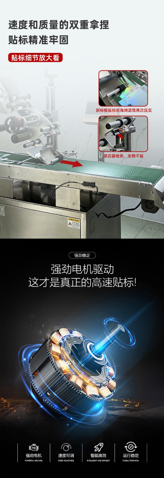 高速度作業:貼標速度超過每分鐘 100 張,能滿足大批量生產需求,極大提高生產效率。