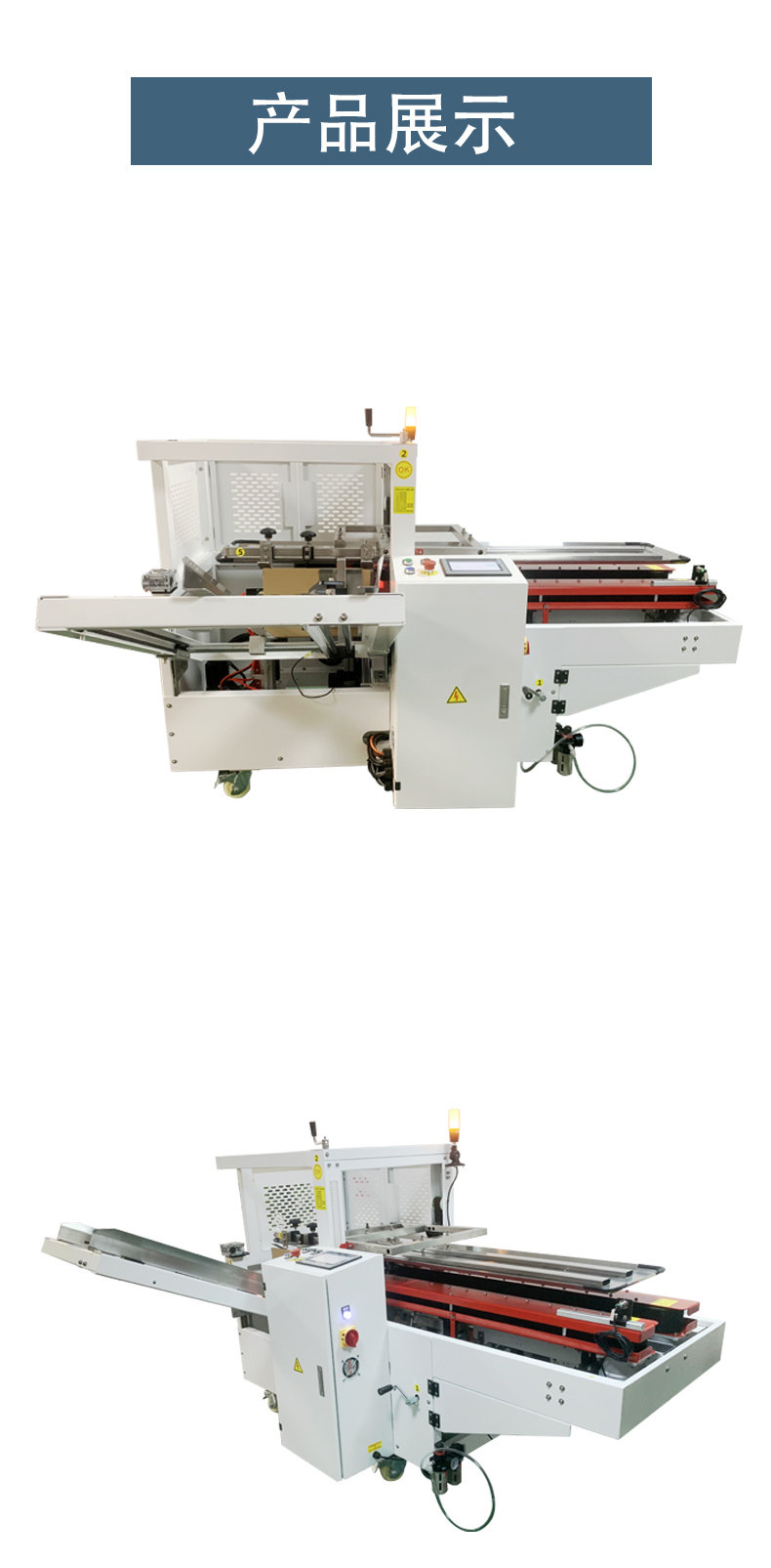 - 易上手:采用 “PLC + 觸摸顯示屏” 控制,操作人員無需專業(yè)技能,僅需通過界面設(shè)置紙箱規(guī)格(如長度、寬度、高度),設(shè)備可自動適配調(diào)整,切換規(guī)格僅需 1-3 分鐘(人工切換需重新熟悉箱型,耗時更長);